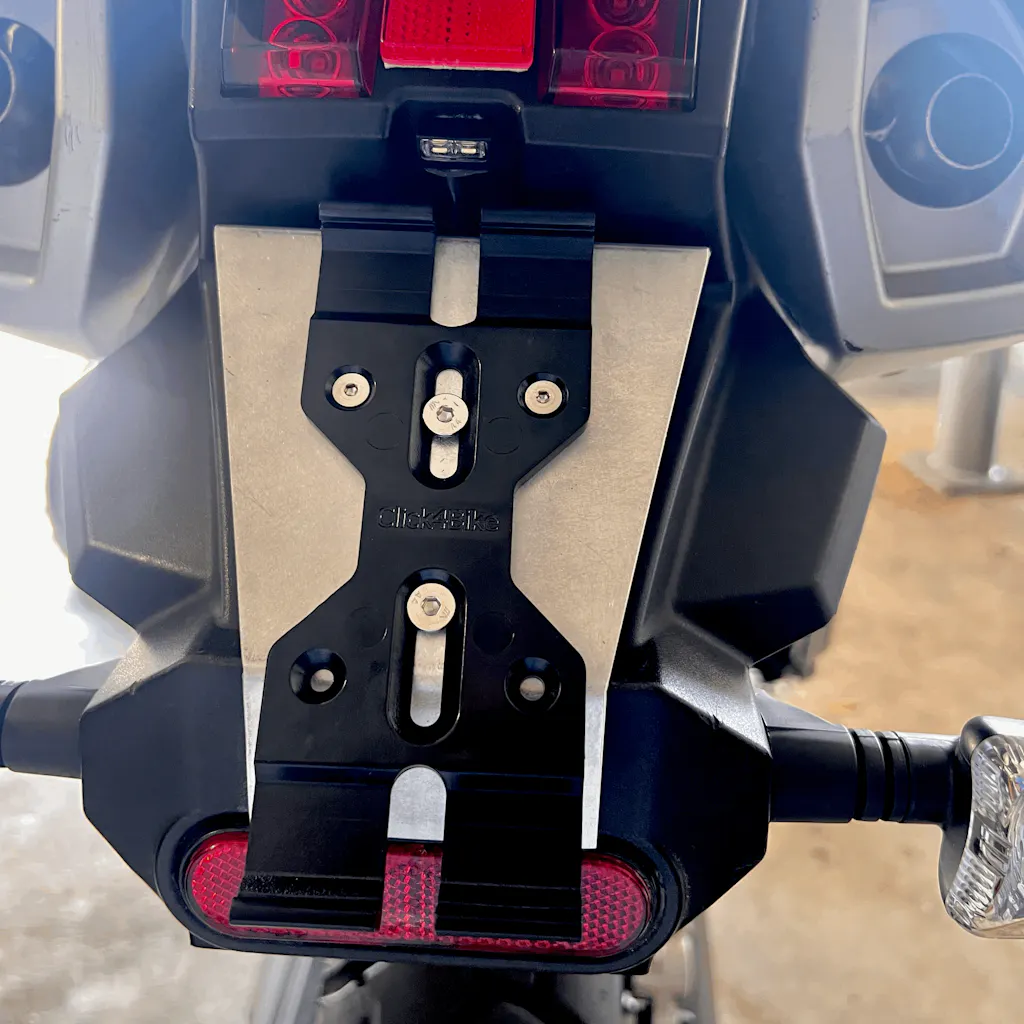 Set of 2 Click4Bike frameless license plate holders made of high-quality plastic manufactured by injection molding and tested several times on the roads.Set of 2 Click4Bike frameless number plate holders